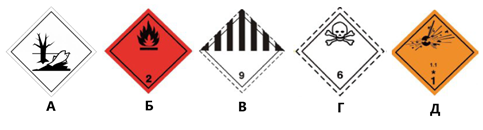 Вопрос 9. На каком из рисунков в соответствии с ДОПОГ представлен маркировочный знак вещества, опасного для окружающей среды?