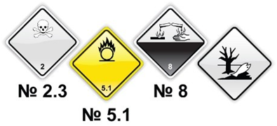 11. Какими из показанных на рисунке знаков должен обозначаться каждый КСМ, передаваемый к дорожной перевозке, если в транспортном документе сделана та-кая запись: «UN 3082, ВЕЩЕСТВО ЖИДКОЕ, ОПАСНОЕ ДЛЯ ОКРУЖАЮЩЕЙ СРЕДЫ, Н.У.К. (параантрацен), 9, III, (E)»?