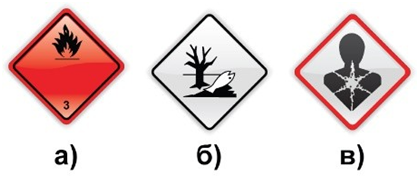11. Какими из показанных на рисунке знаков, в соответствии с ДОПОГ, должен обозначаться каждый барабан, передаваемый к дорожной перевозке, если в транспортном документе сделана такая запись: «UN 1223, КЕРОСИН, 3, II, (D/E), опасно для окружающей среды»?